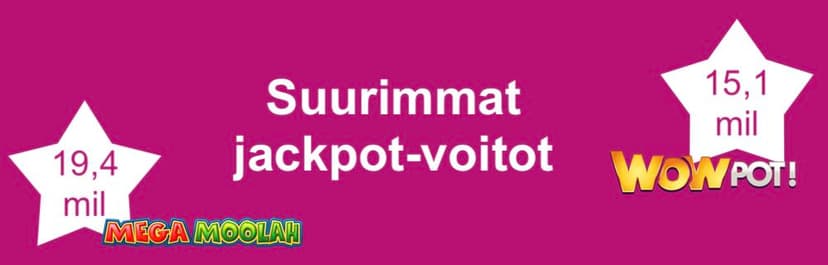 Jackpot-pelit ovat suhteellisen yleisiä, mutta niitäkään ei silti löydy jokaiselta kasinolta. WowPot ja Mega Moolah -sarjat löytyvät noin 80% nettikasinoista, mutta esimerkiksi NetEntin Mega Fortune ja Hall of Gods ovat käyneet hieman harvinaisemmiksi.